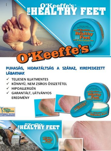 Az O'Keeffe’s Healthy Feet egy elképesztően hatékony, intenzív, hidratáló lábkrém erősen száraz, akár érdes, kirepedezett lábakra, sarkakra. Az illatmentes, egyedülálló összetételének köszönhetően természetesen hidratálja bőrünket, szabályozva annak pH értékét így növelve hidratáltságát.